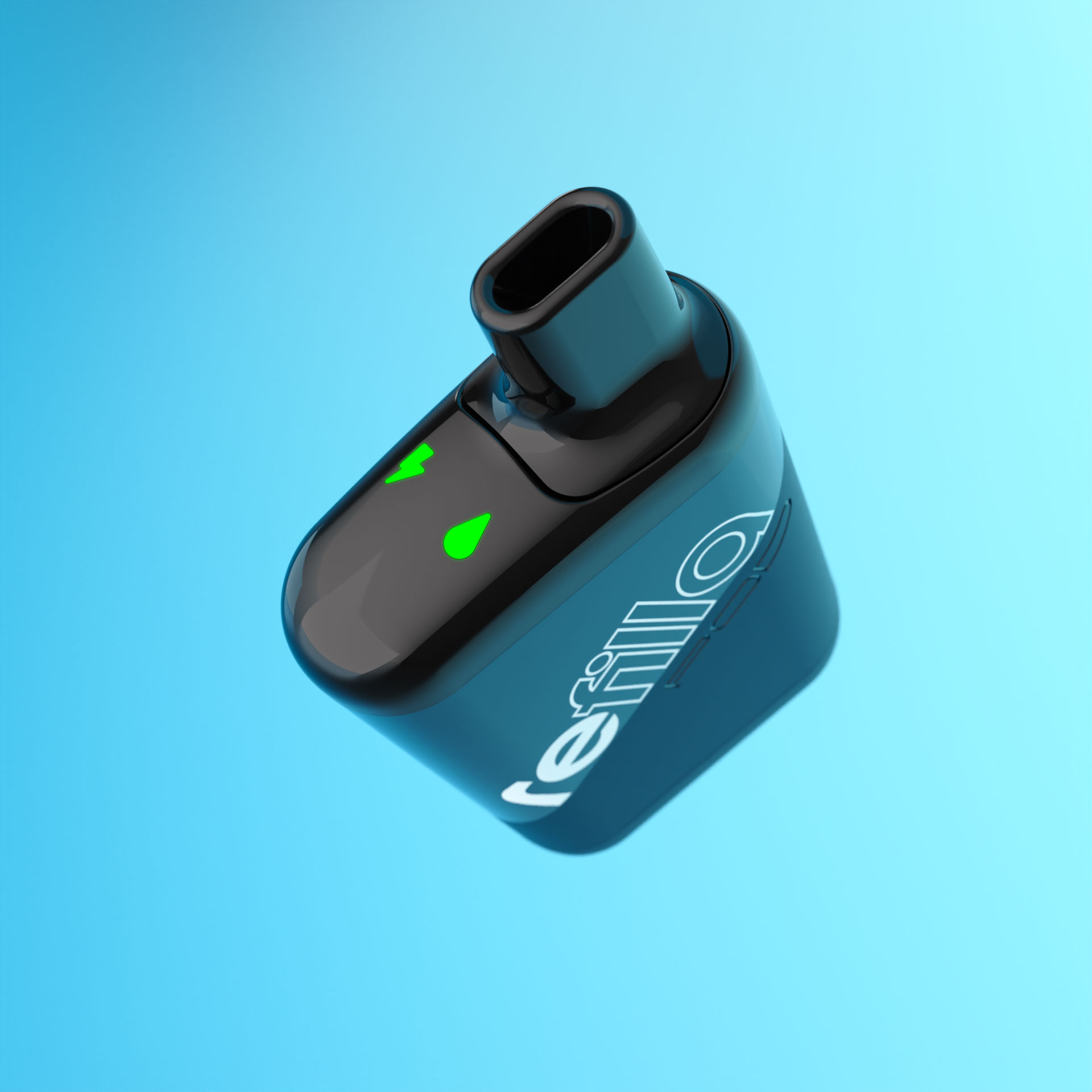 The vape has two LEDs: one to indicate the status of the liquid in the vape and the other to indicate the state of the battery charge.