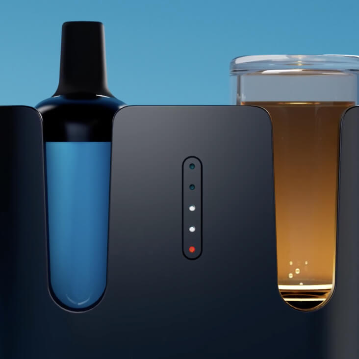 The vaporiser is filled via precision-engineered nozzles in the dock, perfectly aligned with the device base for a clean, mess-free experience.